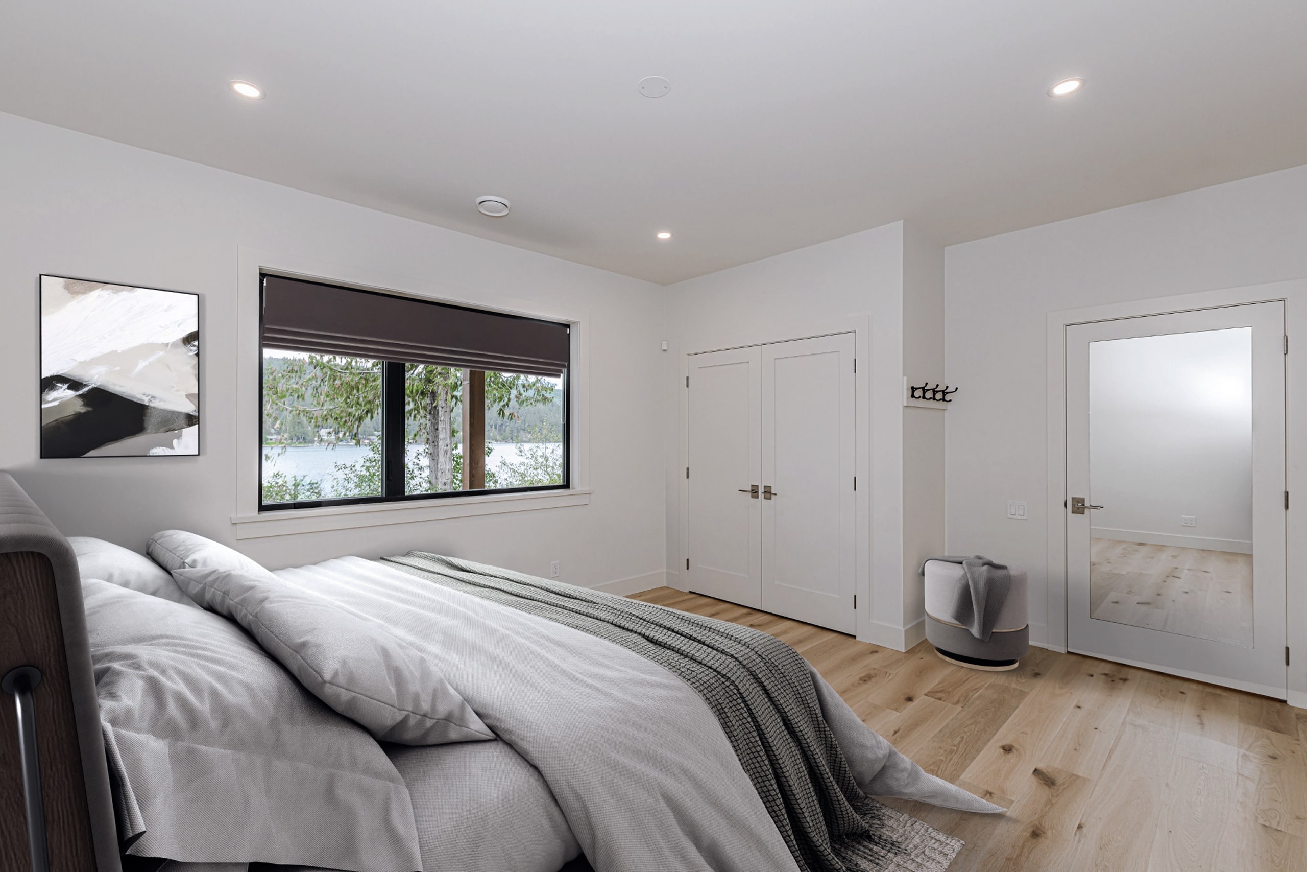 The Retreat was designed to complement its setting, creating a strong connection between the home and the outdoors. With large windows, natural materials, and a layout that embraces the lakefront, the home offers both privacy and shared spaces. A breezeway links the main house to a guest suite, allowing for flexible use and year-round enjoyment. Every detail was chosen to enhance the relaxed, inviting feel of the space, making it an ideal retreat for both quiet getaways and hosting family and friends.